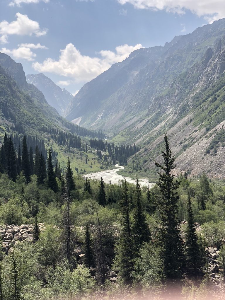 About an hour outside of Bishkek is a fantastic river valley surrounded by pine forests and mountains. The river